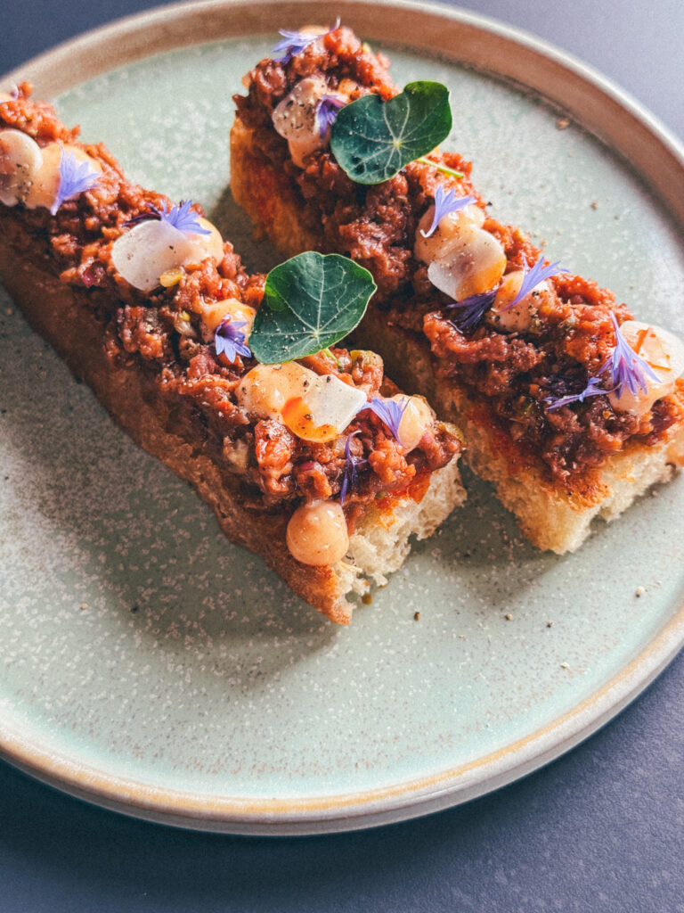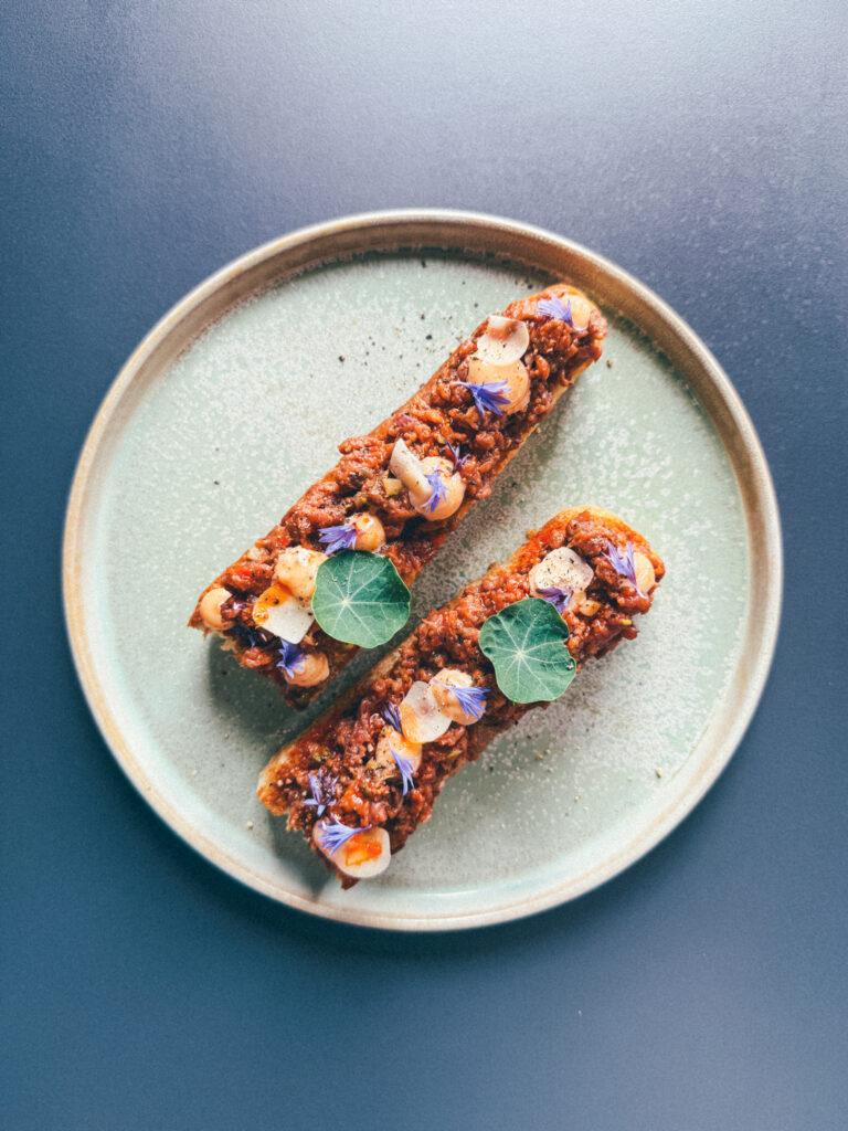 Na začiatok odporúčame Tatarák z jelenieho chrbta, servírovaný na chrumkavej focacci s pikantnou chilli majonézou. Jemná divina sa snúbi s výraznou chuťou korenenej omáčky a prenesie vás priamo do hlbokých horehronských lesov.