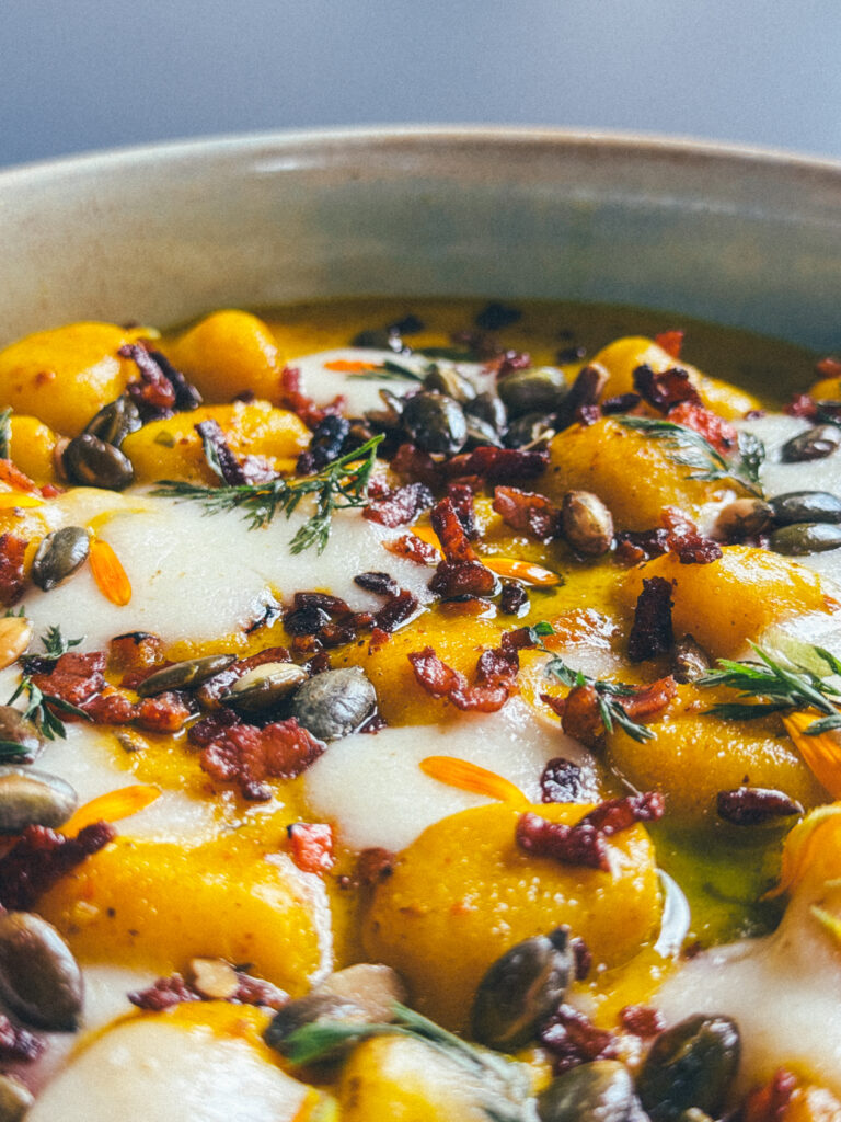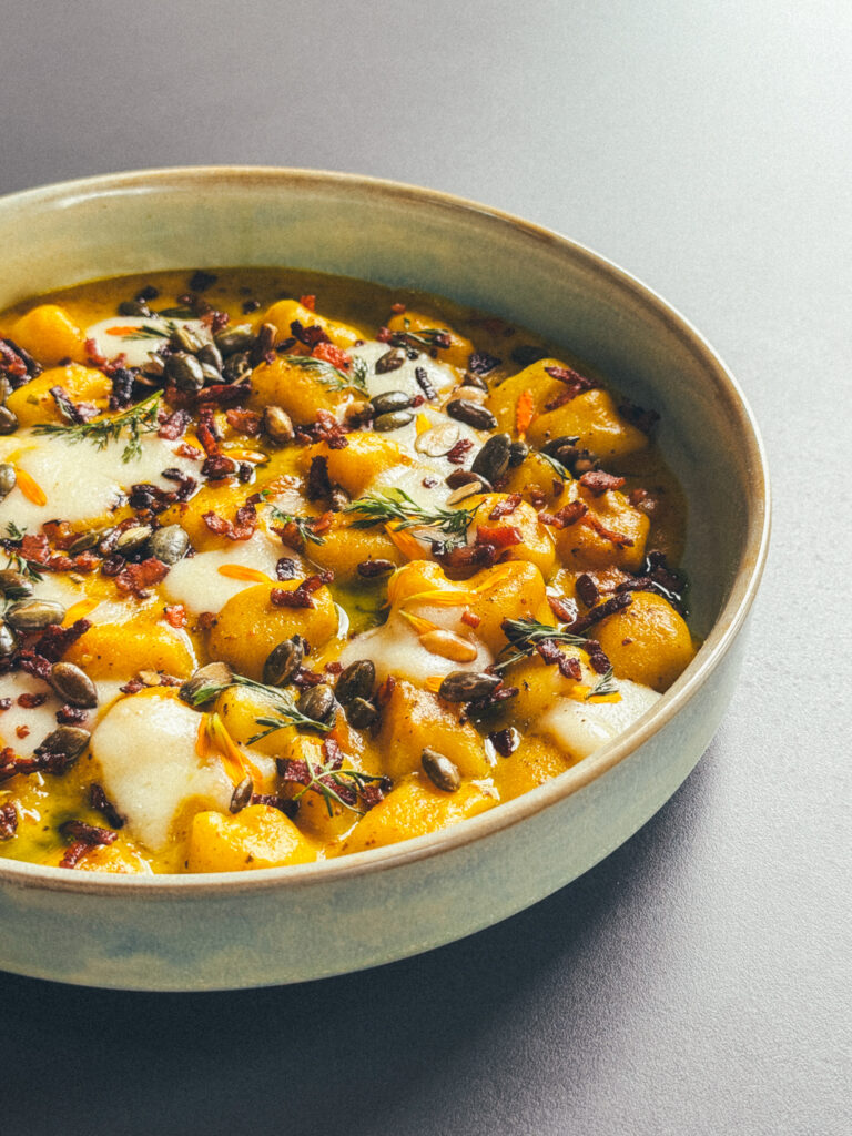Milovníkom klasických chutí odporúčame domáce gnocchi na omáčke z pečenej tekvice s bryndzou a restovanou slaninou, kde sa sladkosť tekvice dokonale spája s krémovou bryndzou a jemnou slaninkou.