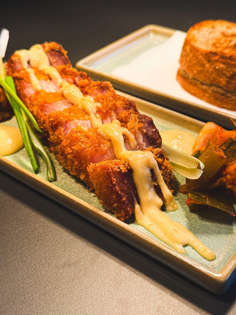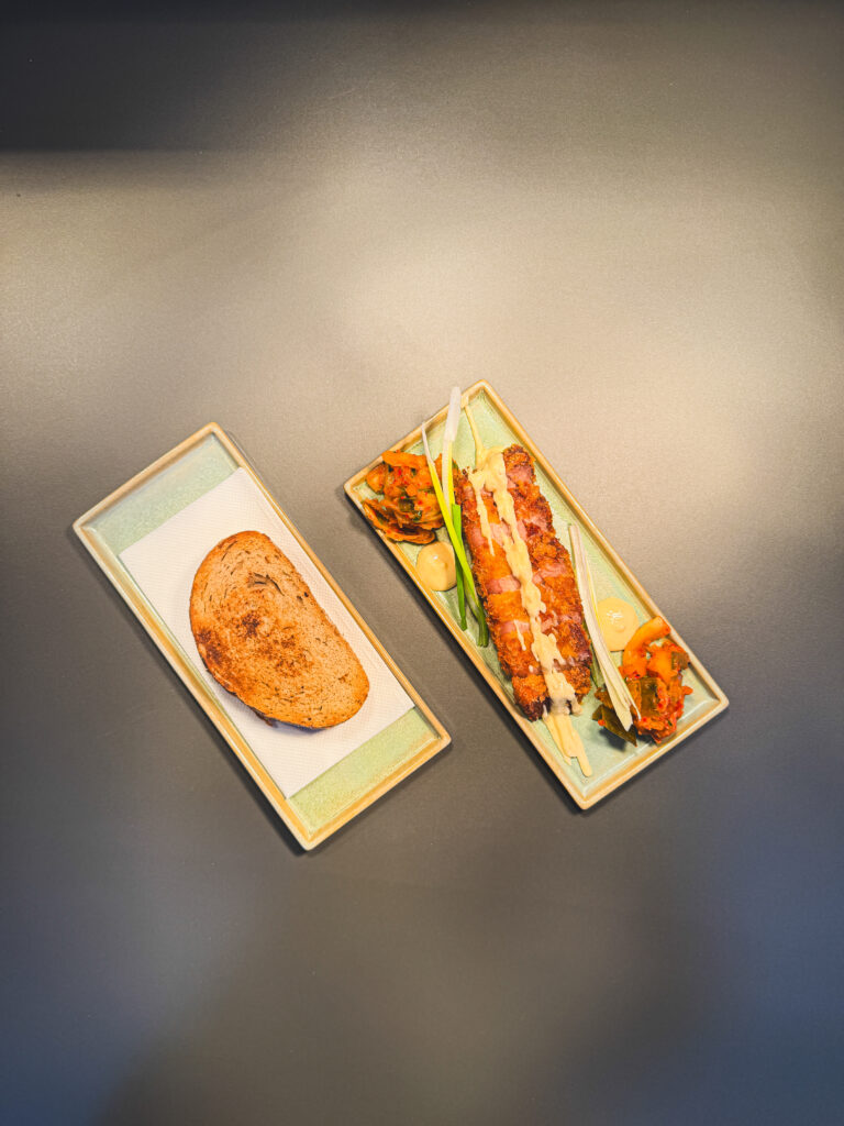 Zimné menu otvára chrumkavý bravčový bok doplnený o fermentovanú kapustu, med a chren. Je to kombinácia, ktorá je na prvý pohľad jednoduchá, no v chuti prekvapí svojou vyváženosťou.Fermentovaná kapusta prináša sviežosť a kyslosť, med jemnú sladkosť a chren príjemnú ostrosť. Chrumkavá textúra mäsa v spojení s kváskovým chlebíkom vytvára predjedlo, ktoré pripraví chuťové poháriky na hlavné jedlá.