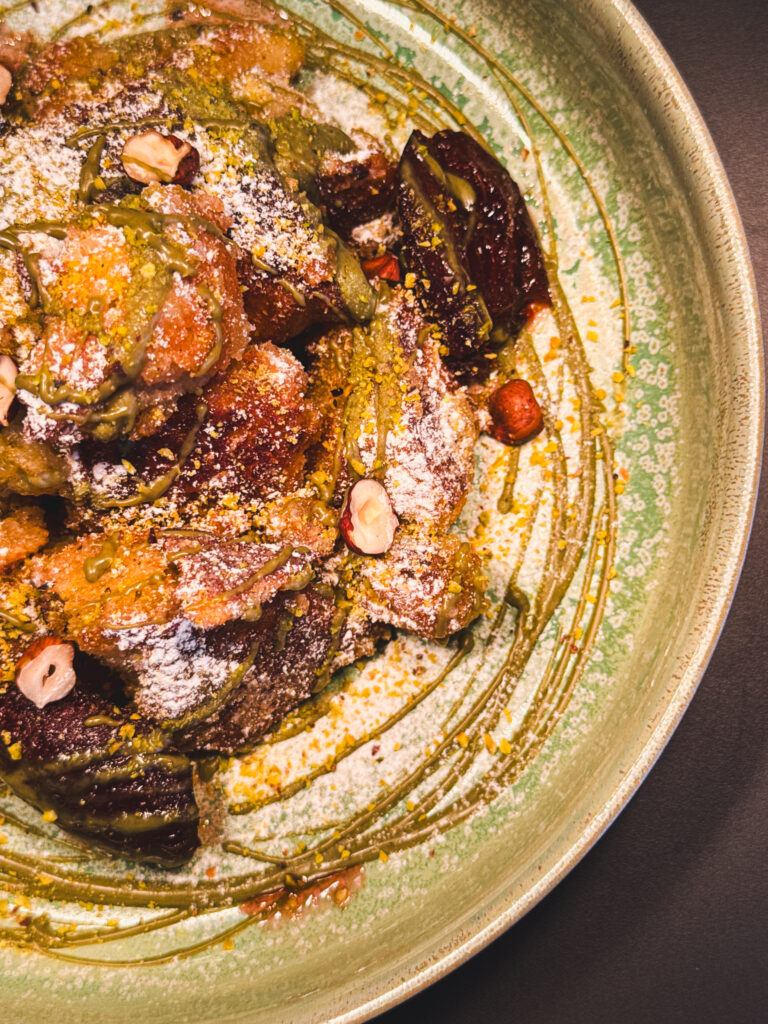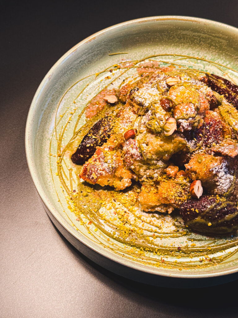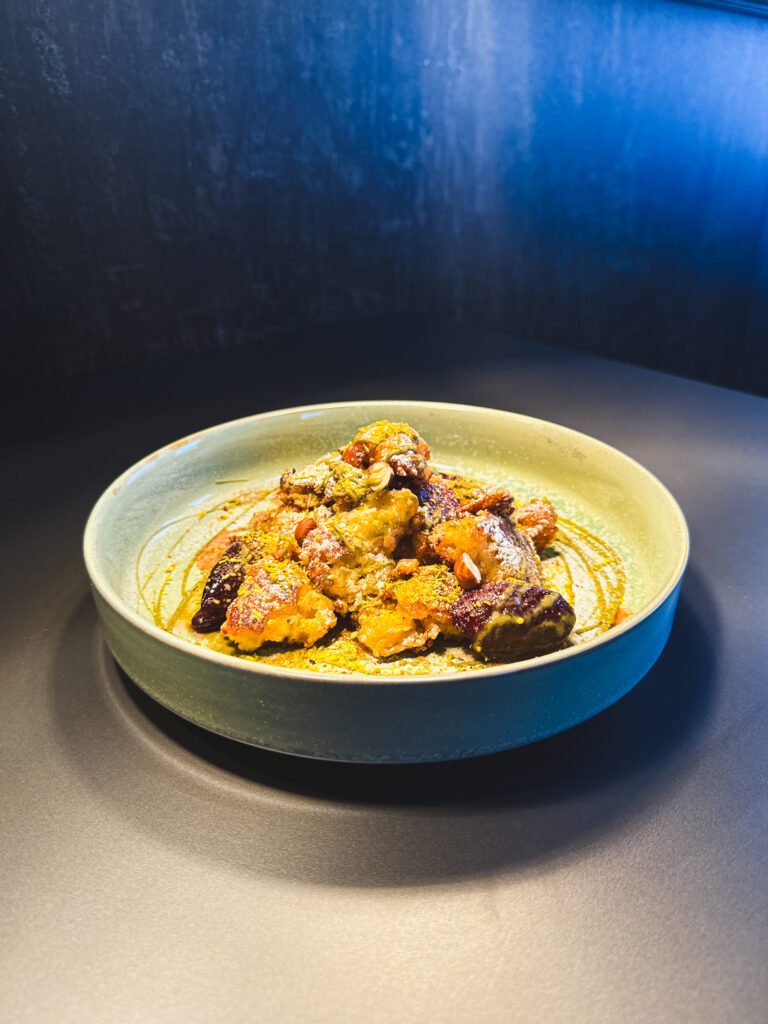 Zimný zážitok uzatvára cisársky trhanec pripravený z vláčneho tvarohového cesta, doplnený o pistáciový krém a horúce slivky. Dezert, ktorý evokuje pohodu, pokojné večery a návrat k jednoduchým radostiam.Je to dezert, ktorý sa neponáhľa – presne tak, ako by nemala vyzerať ani zimná návšteva reštaurácie.