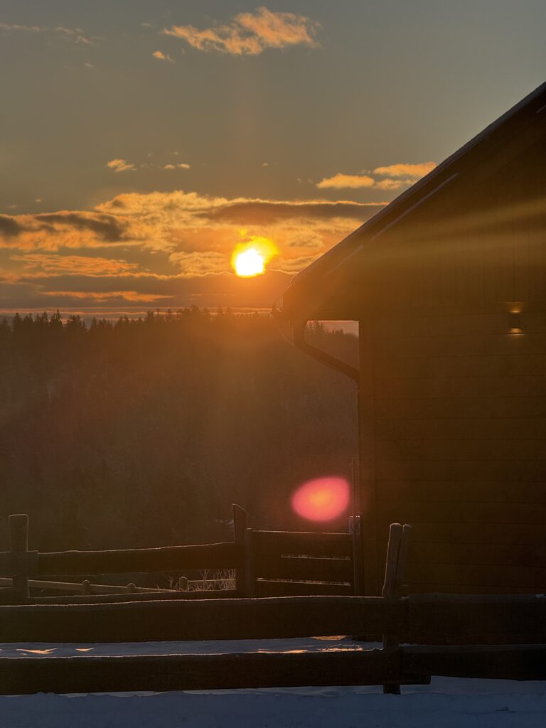 - Prechádzka po okolitých chodníkoch – zastávky na lavičkách a pri zemľankách, fotografie zasneženej krajiny.